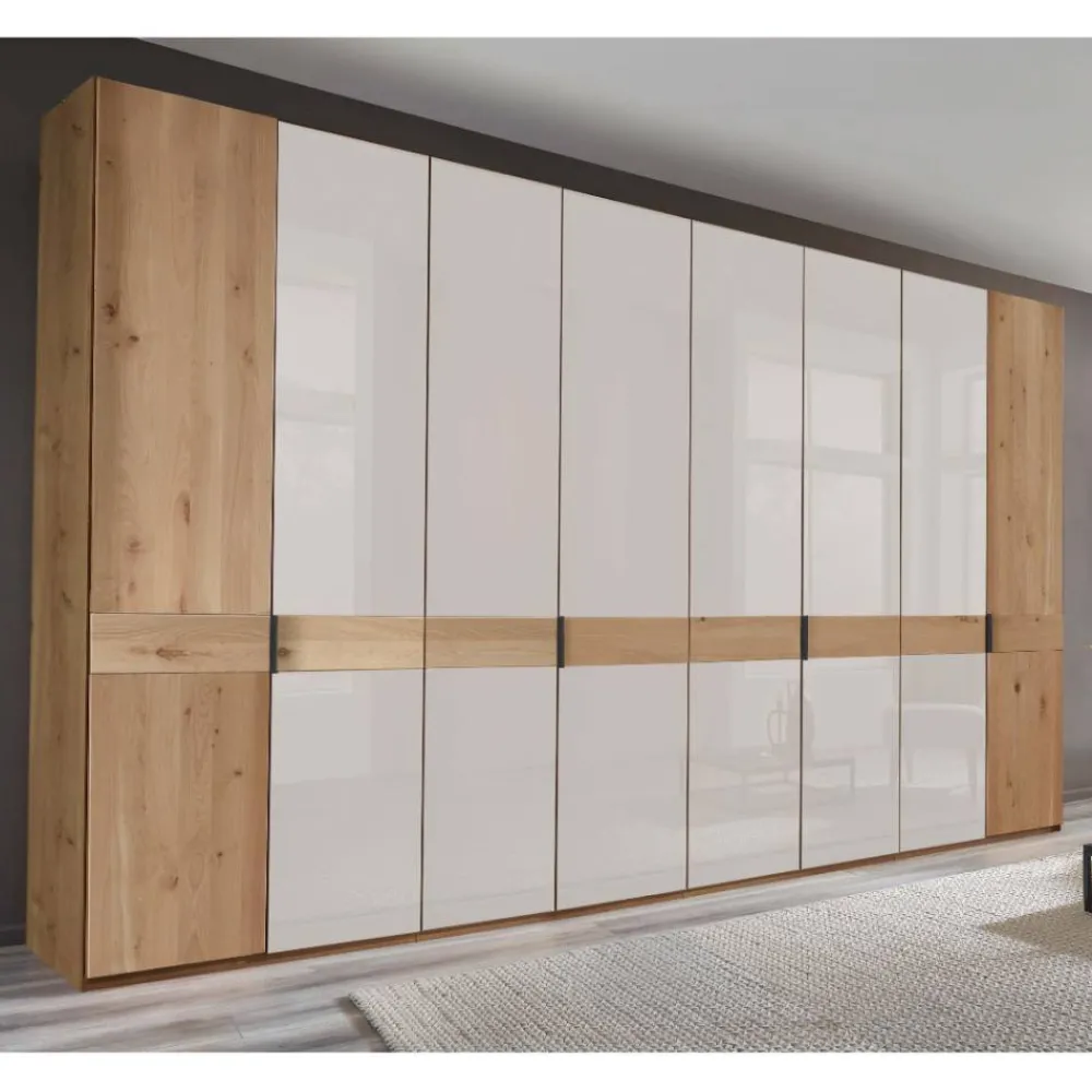 - XXL Kleiderschrank in Weiß und Eiche Bianco teilmassiv mit Ästen