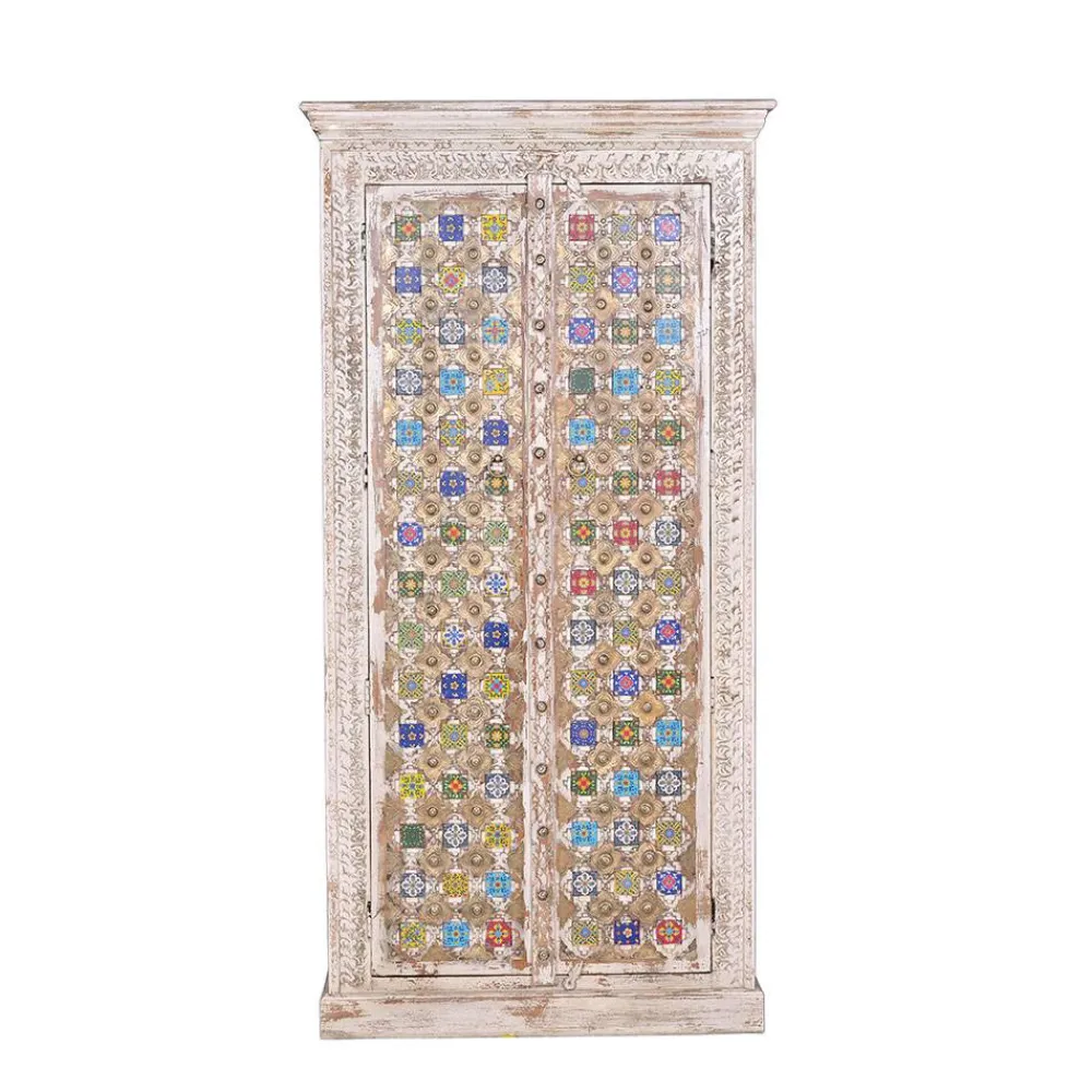 - Erstklassiger Garderobenschrank in Antikweiß und Bunt