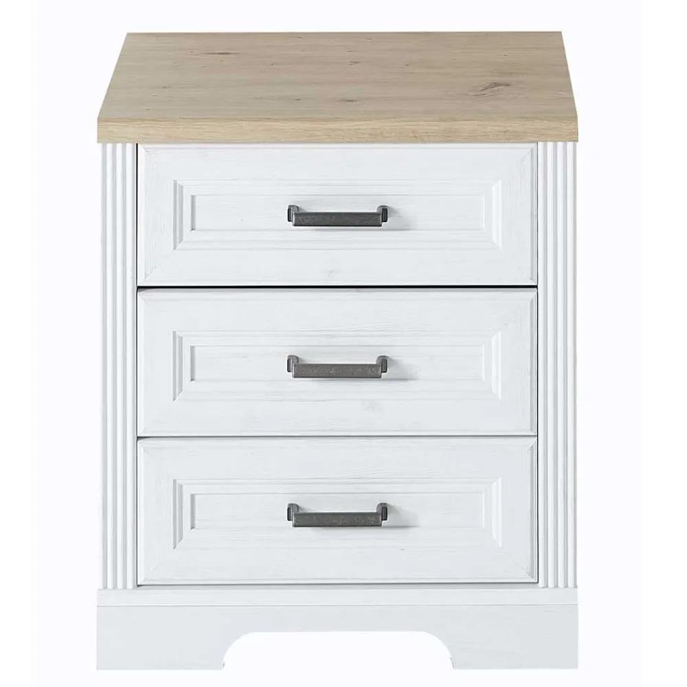 - Attraktiver Rollcontainer in Pinie Weiß und Eichefarben