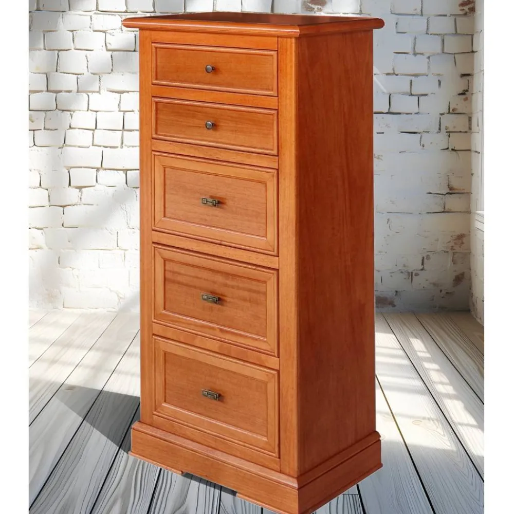 - Fünf Schubladen mit Holzauszug, Innenmaße: BxHxT: ca. 40×9/19×30 cm