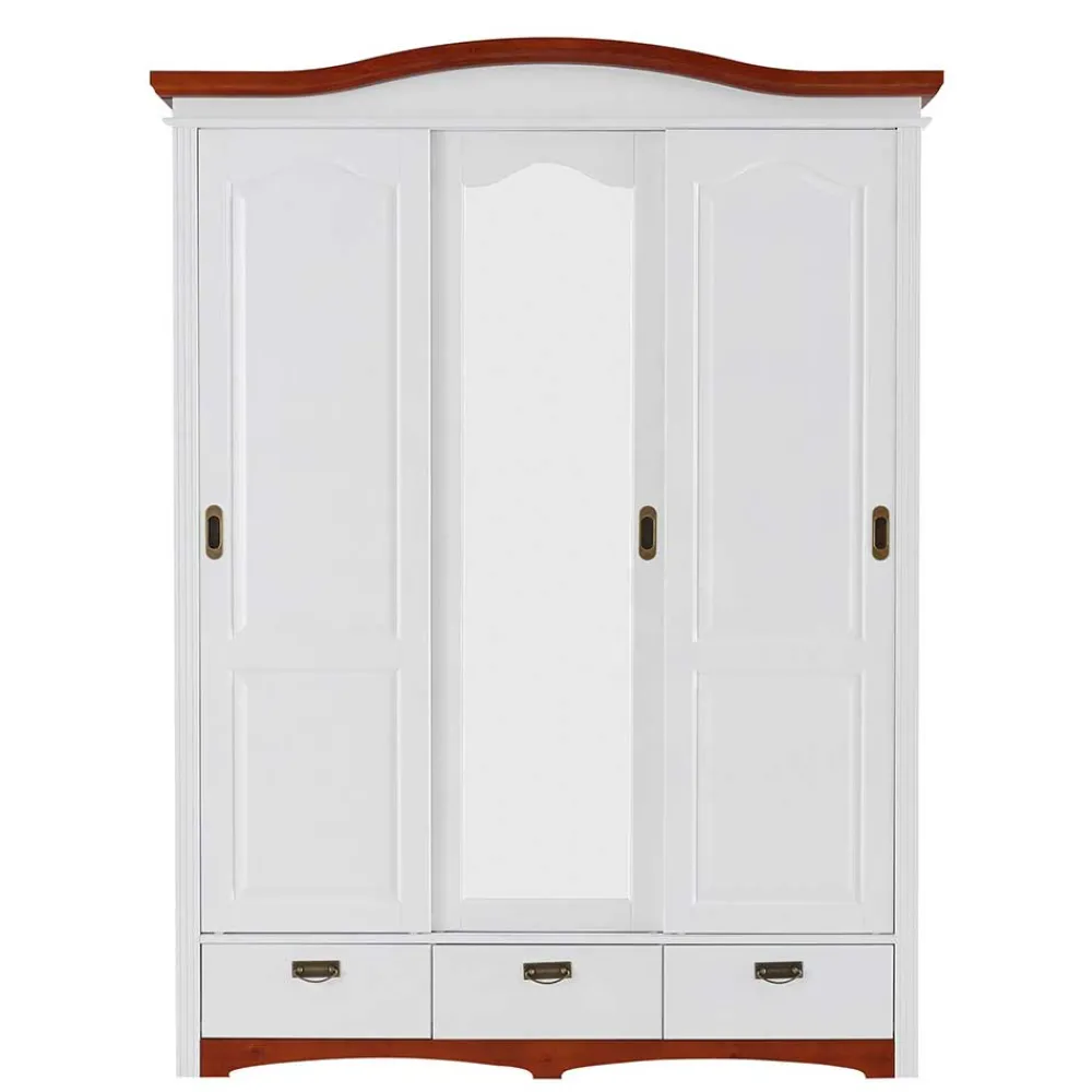 - Aparter Kleiderschrank in Weiß und Kirschbaumfarben