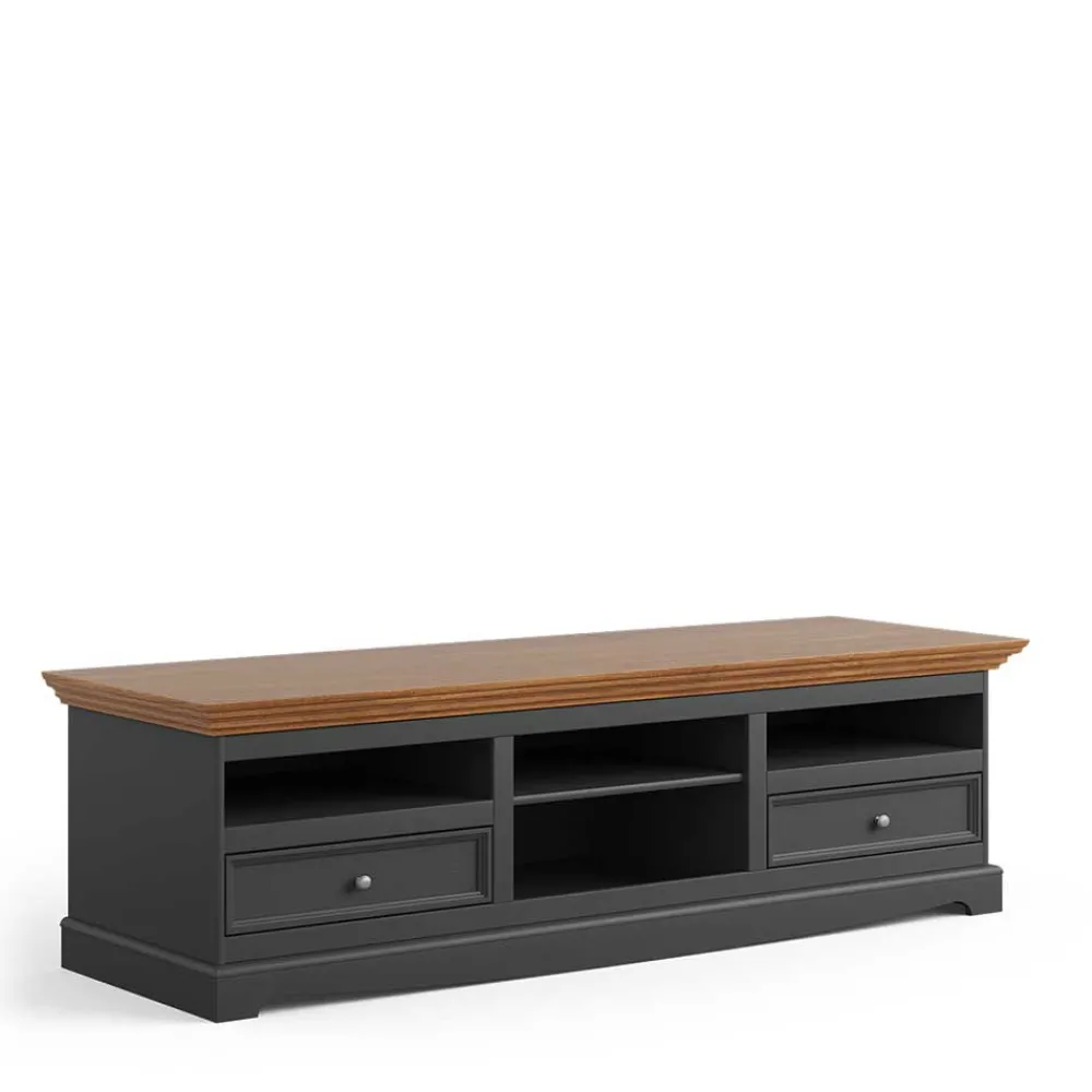- Hervorragendes TV-Lowboard in Grau und Kieferfarben