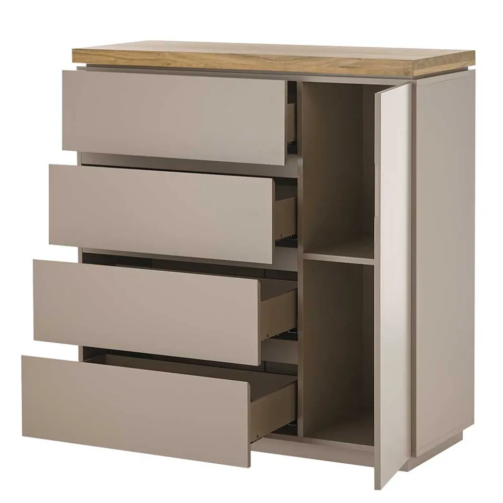 - Attraktive Kommode in Taupe und Akaziefarben