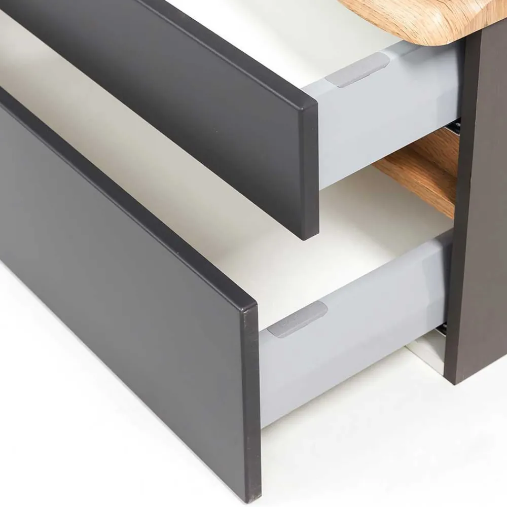 - Attraktiver Doppel-Waschtisch mit Baumkante in Wildeichefarben und Dunkelgrau