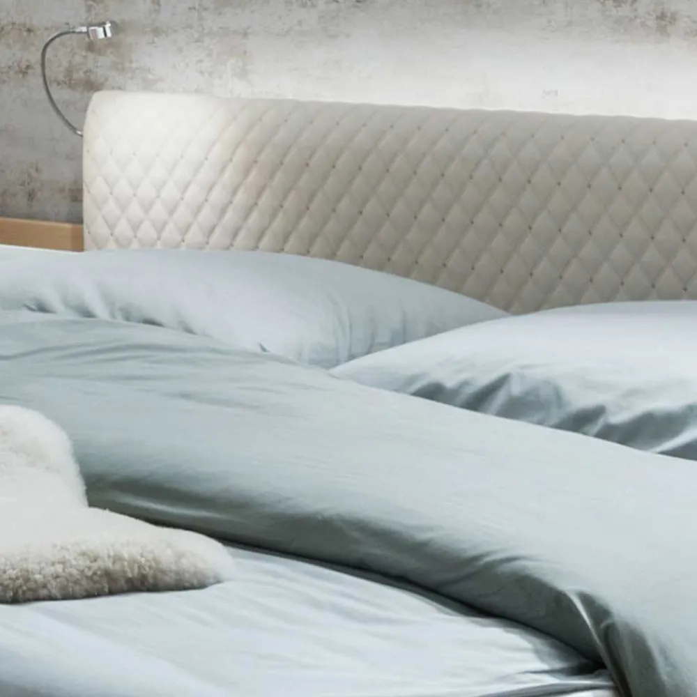 - Gemütliches Polster-Kopfteil mit Kunstlederbezug (100 % Polyurethan), attraktive Rautensteppung