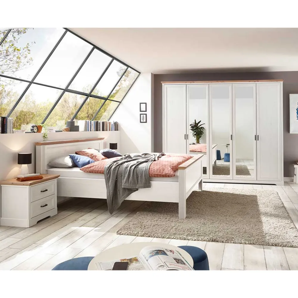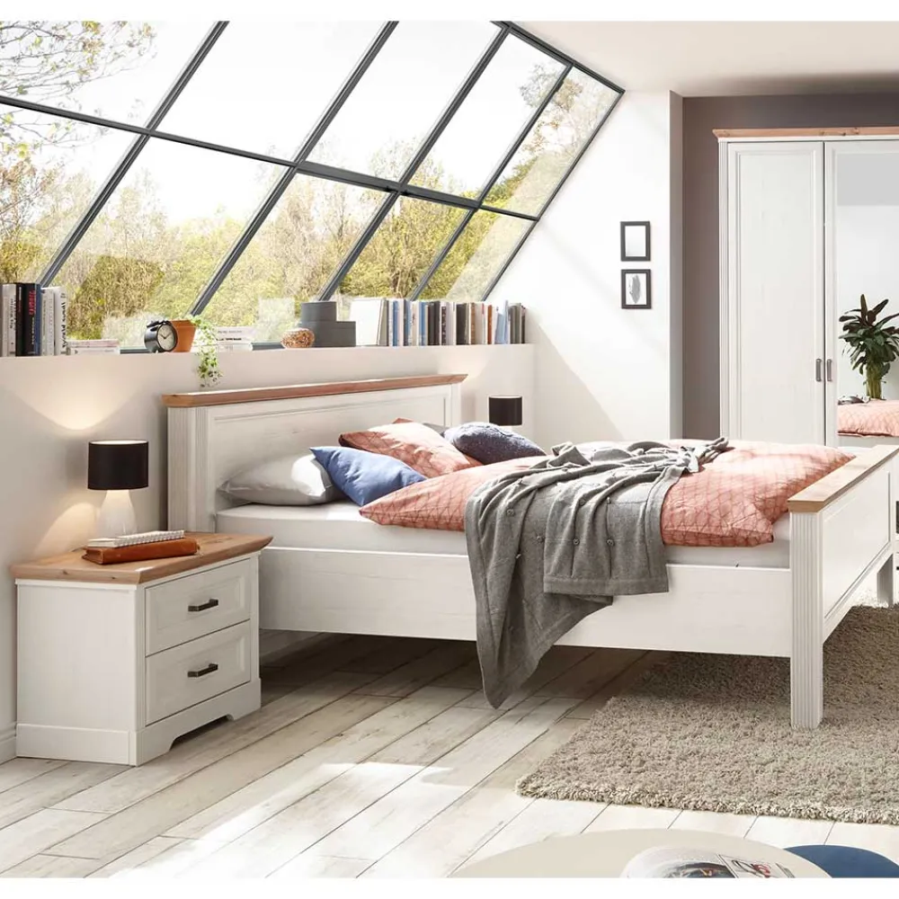 - Wunderschönes Bett in Holzoptik Pinie weiß und Wildeichefarben