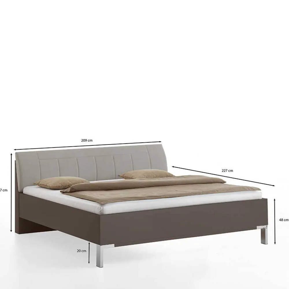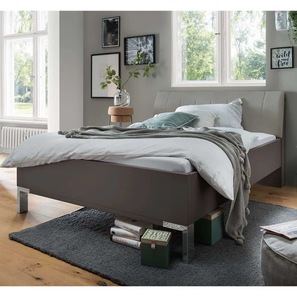 - Gepolstertes Kopfteil, elegant gesteppt, bezogen mit hellgrauem Kunstleder (100 % Polyurethan)