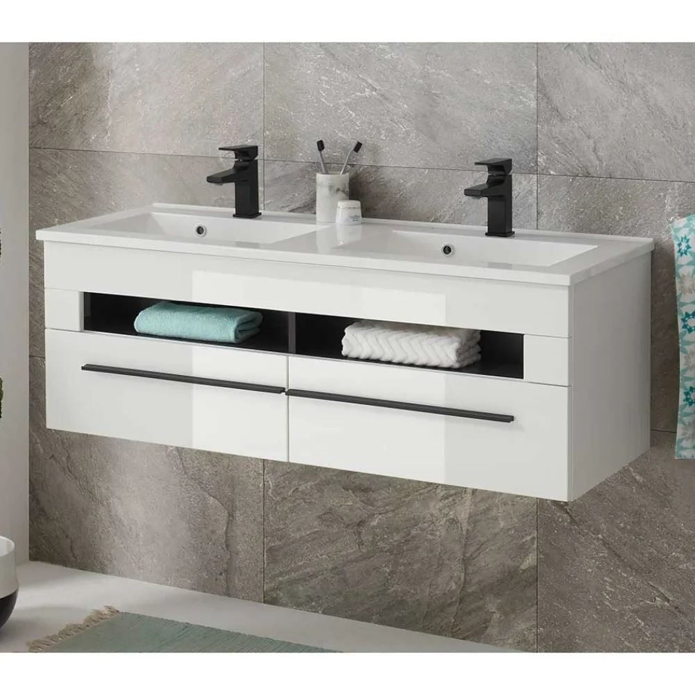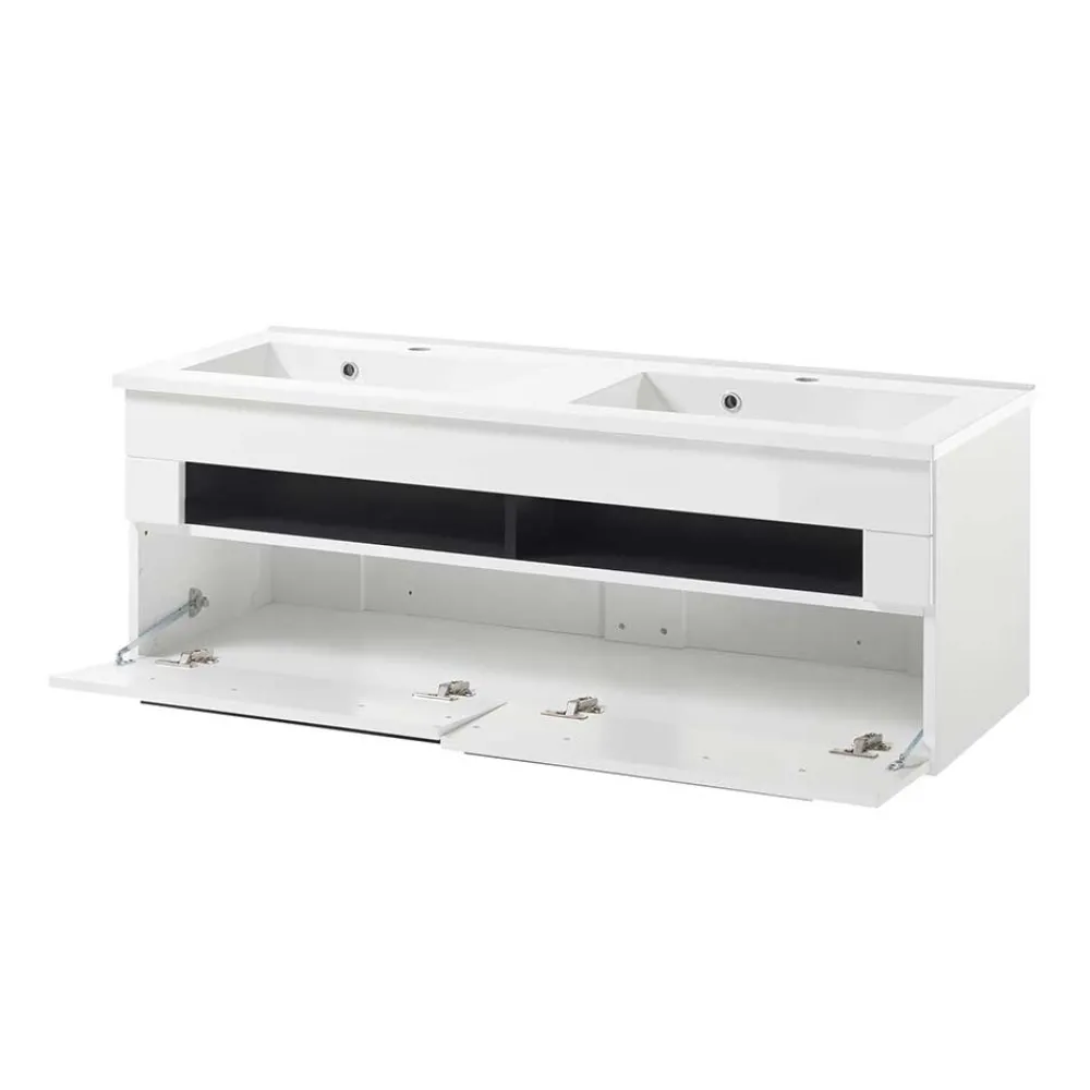 - Formschöner Doppelwaschtisch aus Mineralguss mit Ablauflöchern