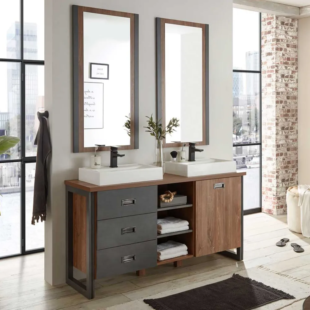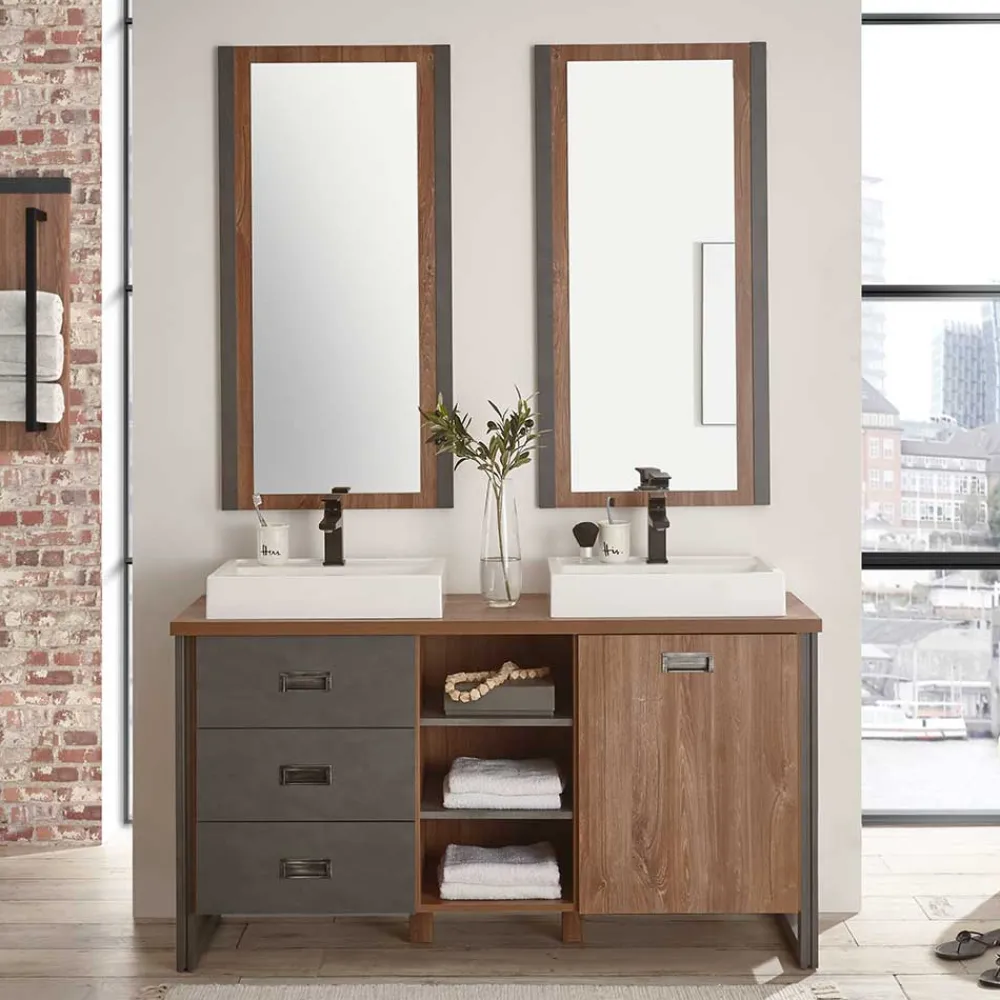 - Raffiniertes Badmöbel Set in Eiche dunkel und Grau
