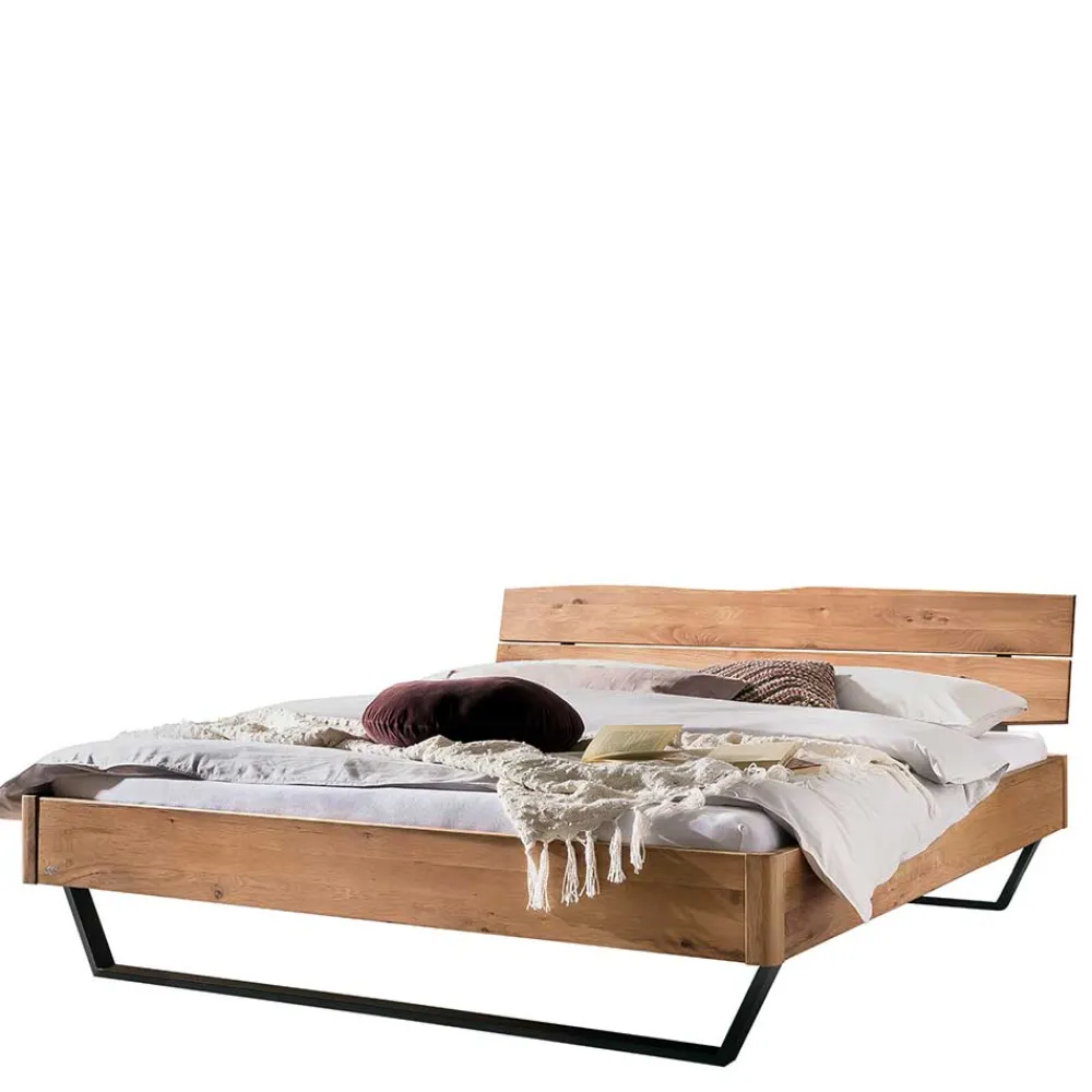 - Robustes Bett in Wildeichefarben und Anthrazit