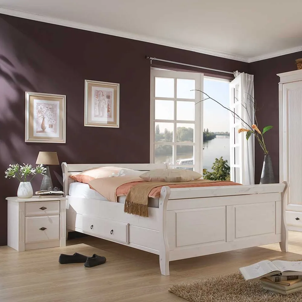 - Traumhaftes Bett mit Nachtkommoden in Weiß