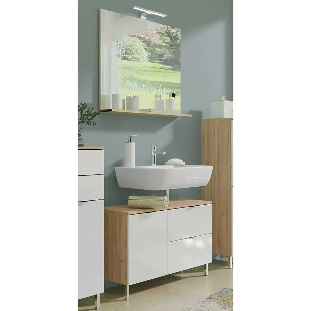 - Wunderbares Badezimmer Set in Weiß und Wildeichefarben