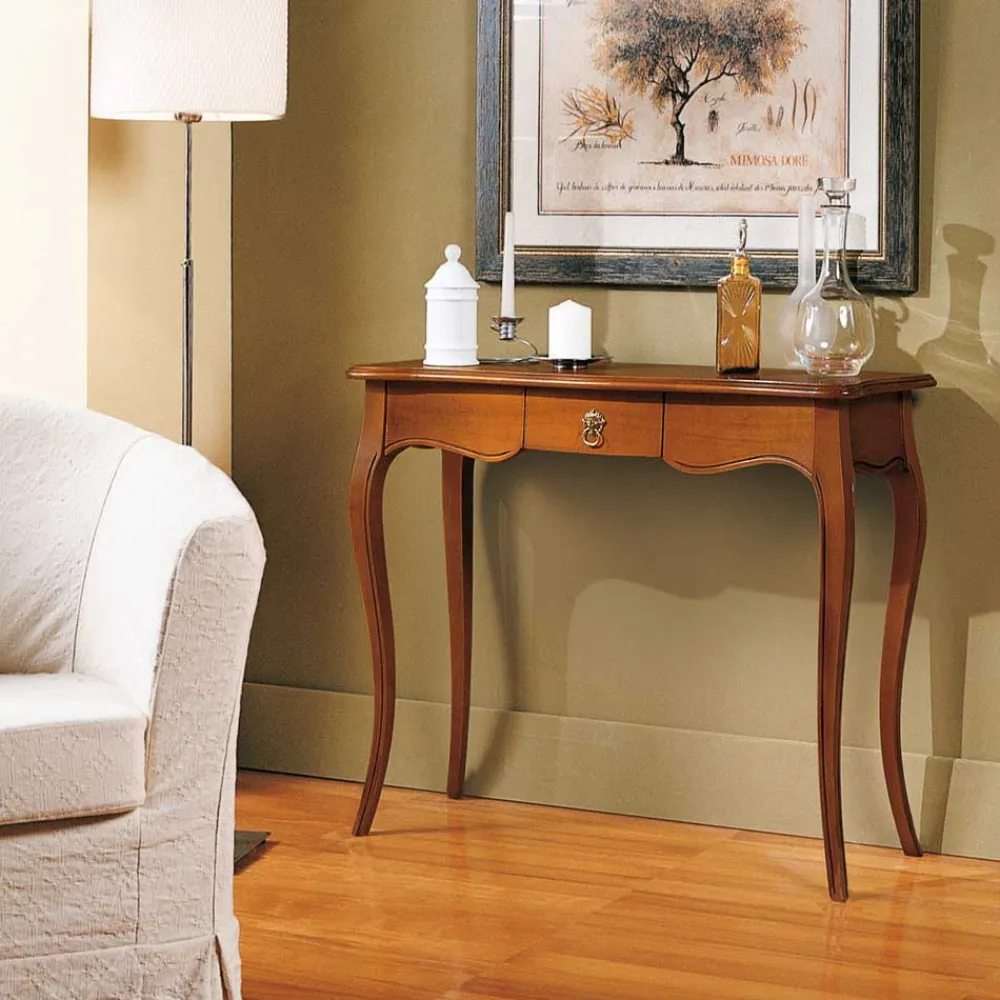 - Zierliches Vierfußgestell aus massivem Buchenholz, konvex geformt