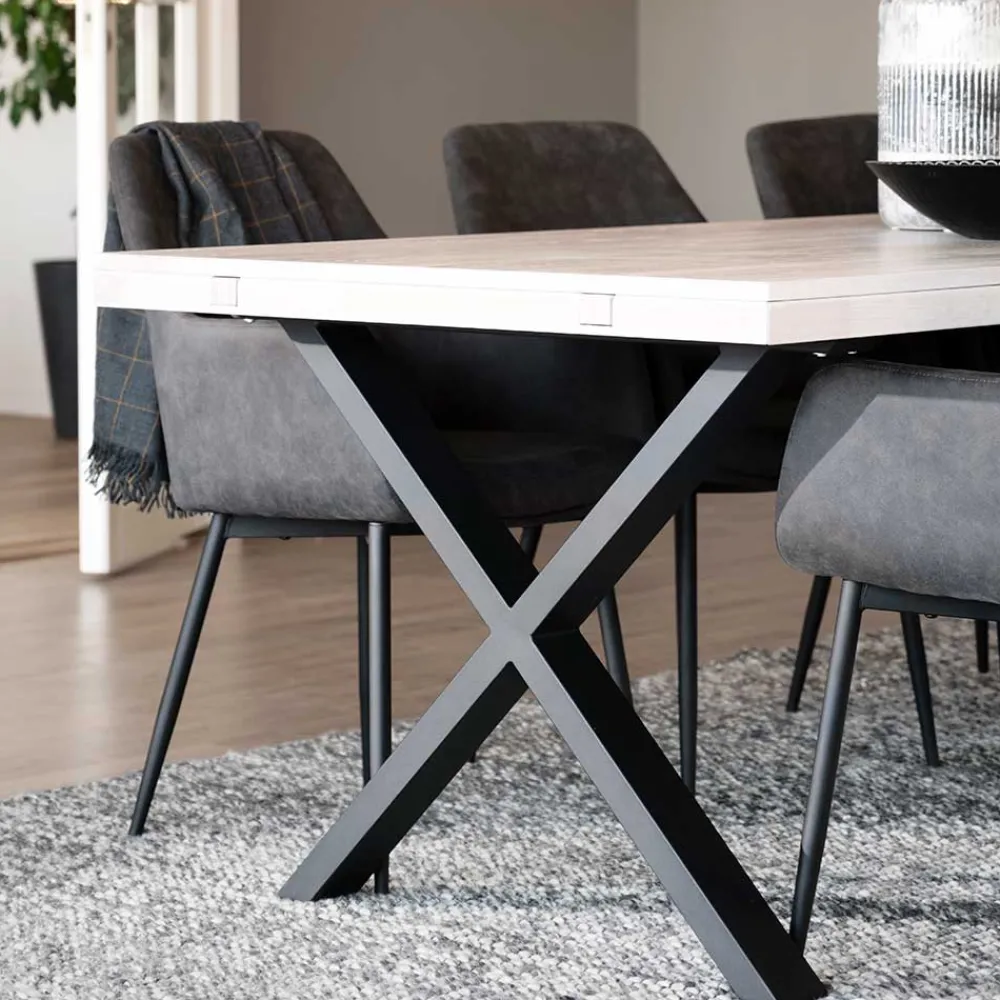 - Komfortable Sitzgruppe in Eiche White Wash, Schwarz und Dunkelgrau