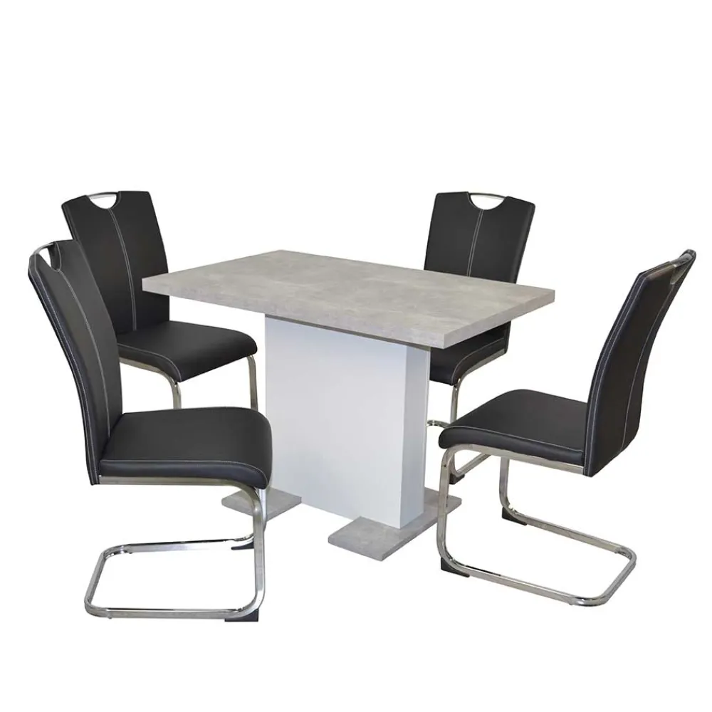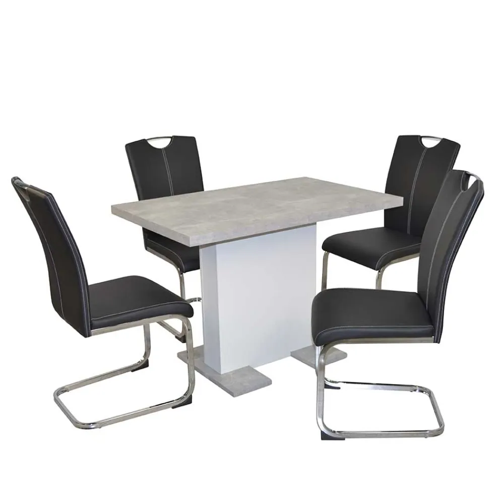 - Trendstarke Essgruppe in Schwarz, Beton Optik, Weiß und Chromfarben