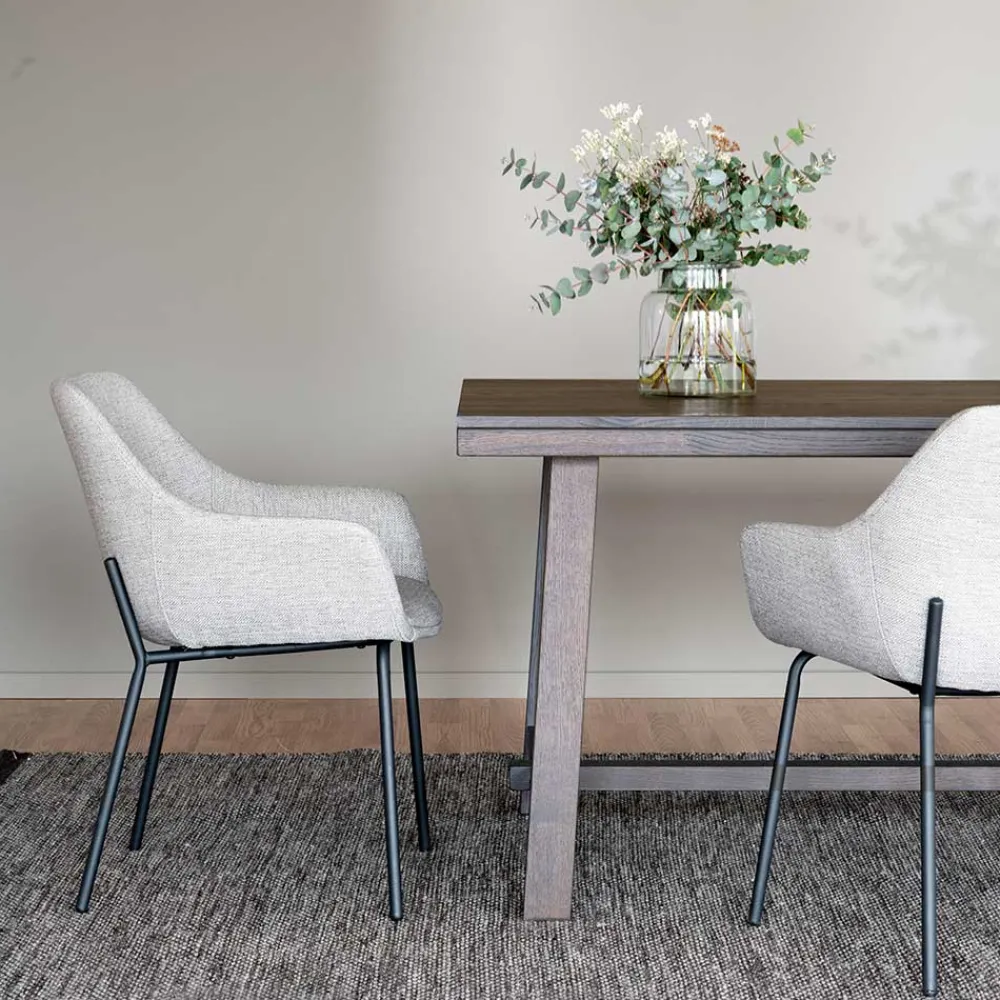 - Stilsichere Sitzgruppe in dunkler Eiche, Hellgrau und Schwarz