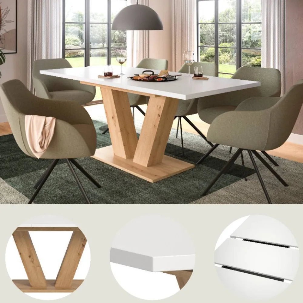 - Aktueller Küchentisch in Weiß und Wildeichefarben