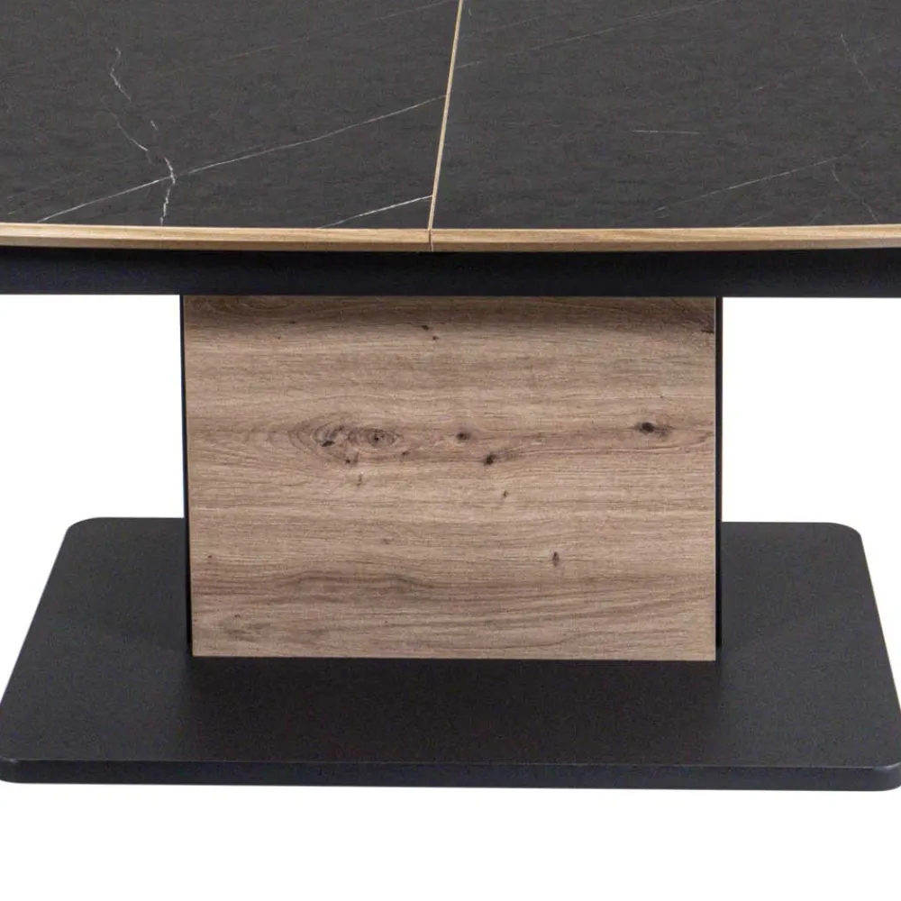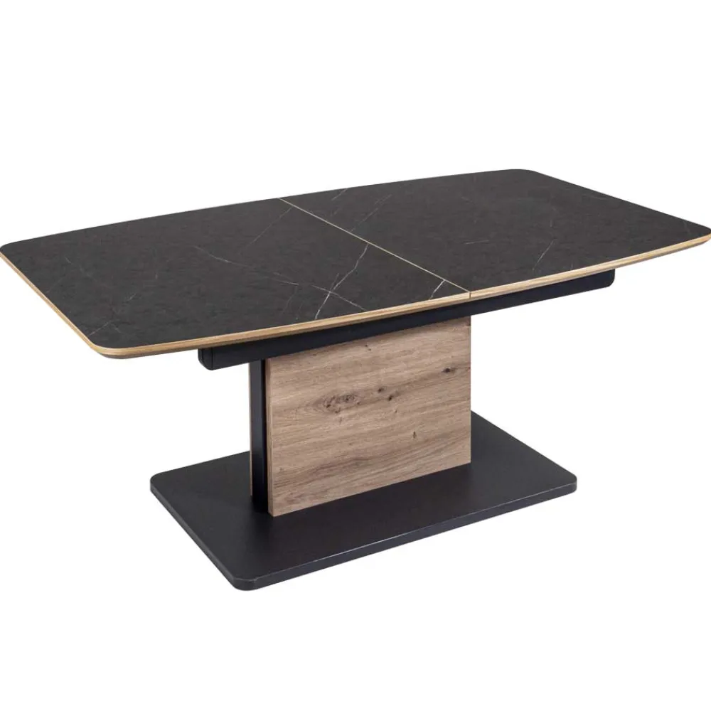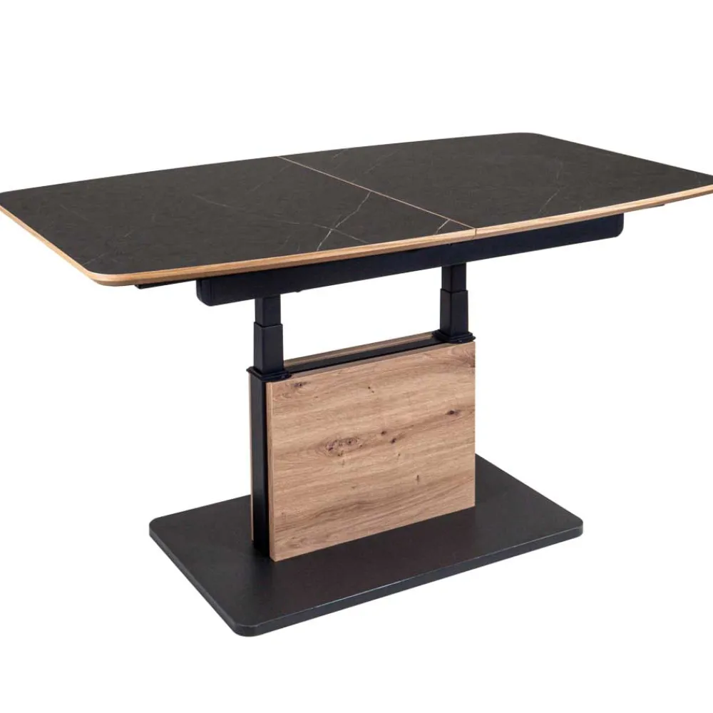 - Modern und elegant präsentiert sich dieser Tisch in den Farben Schwarzgrau und Wildeichefarben