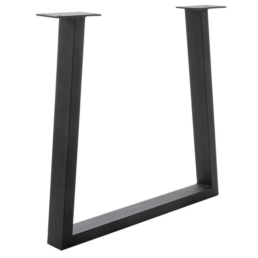 - Ein schwarz pulverbeschichtetes Metall-Bügelgestell in Trapezform sorgt für sicheren Stand