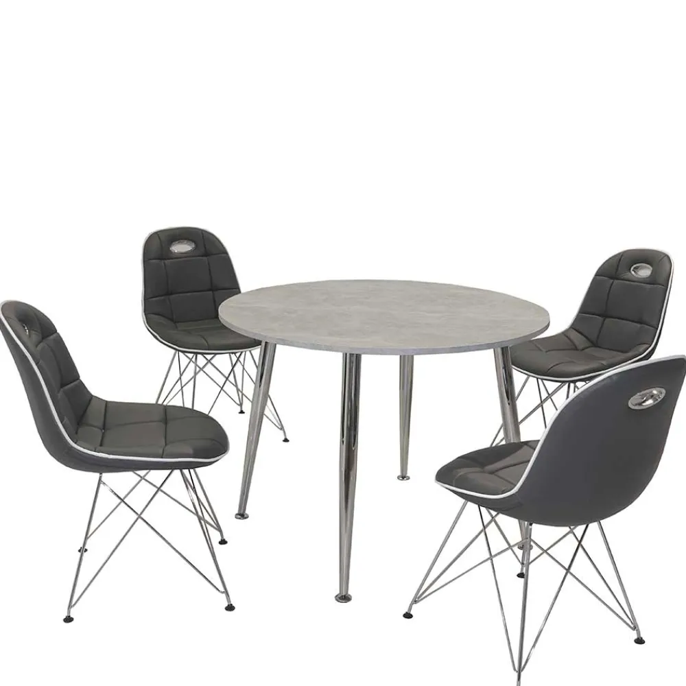 - Kompakte Sitzgruppe in Dunkelgrau, Chrom und Beton Grau