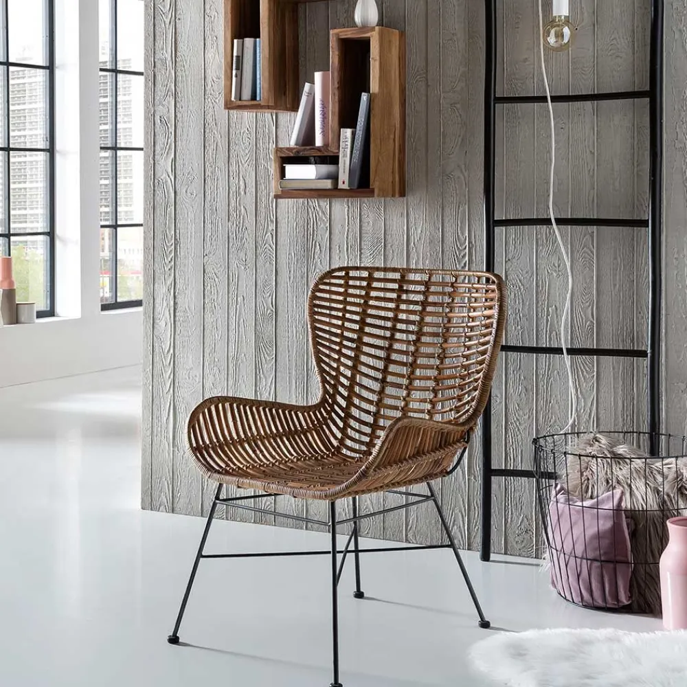 - Angenehme Rückenlehne aus ungeschältem Rattan