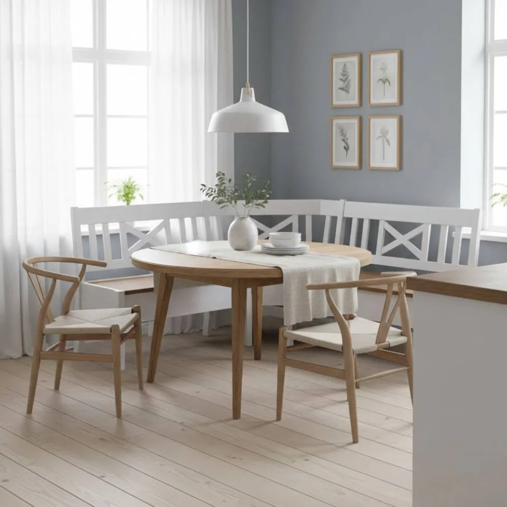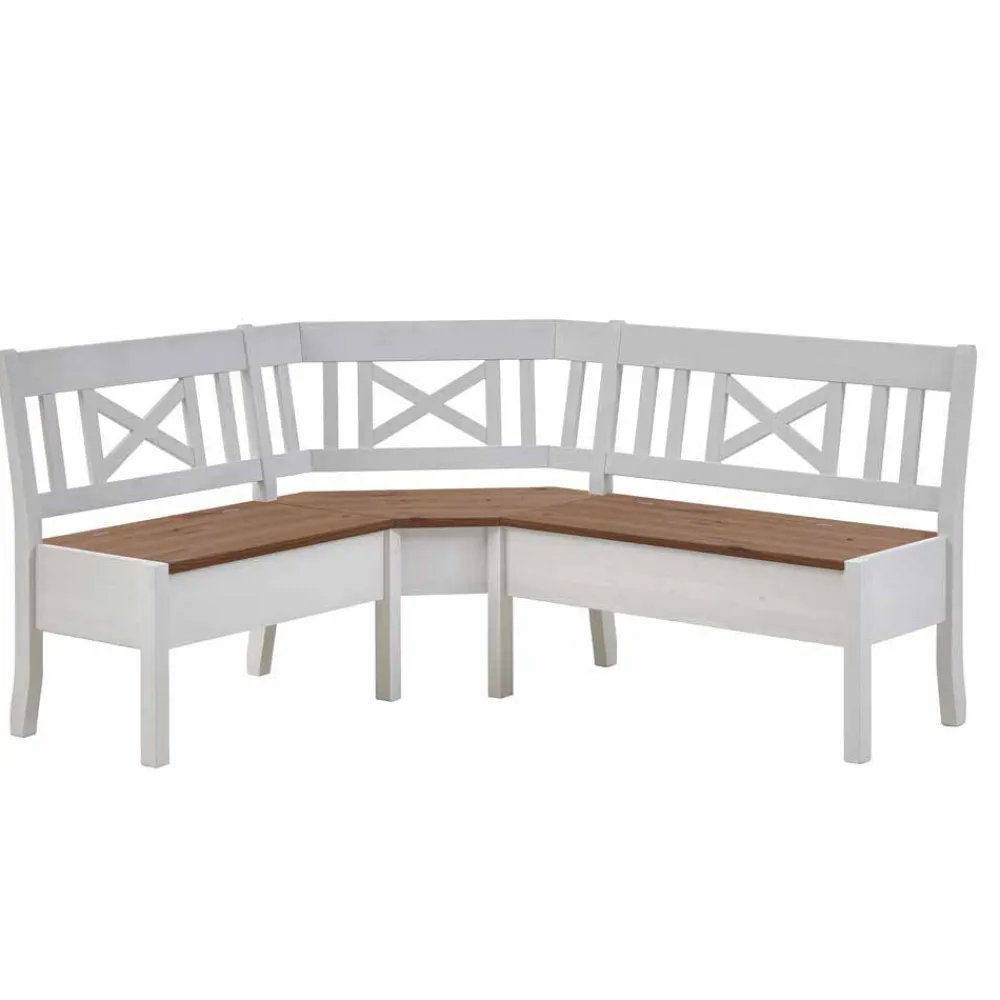 - Attraktive Eckbank in Weiß und Kiefer Bernsteinfarben