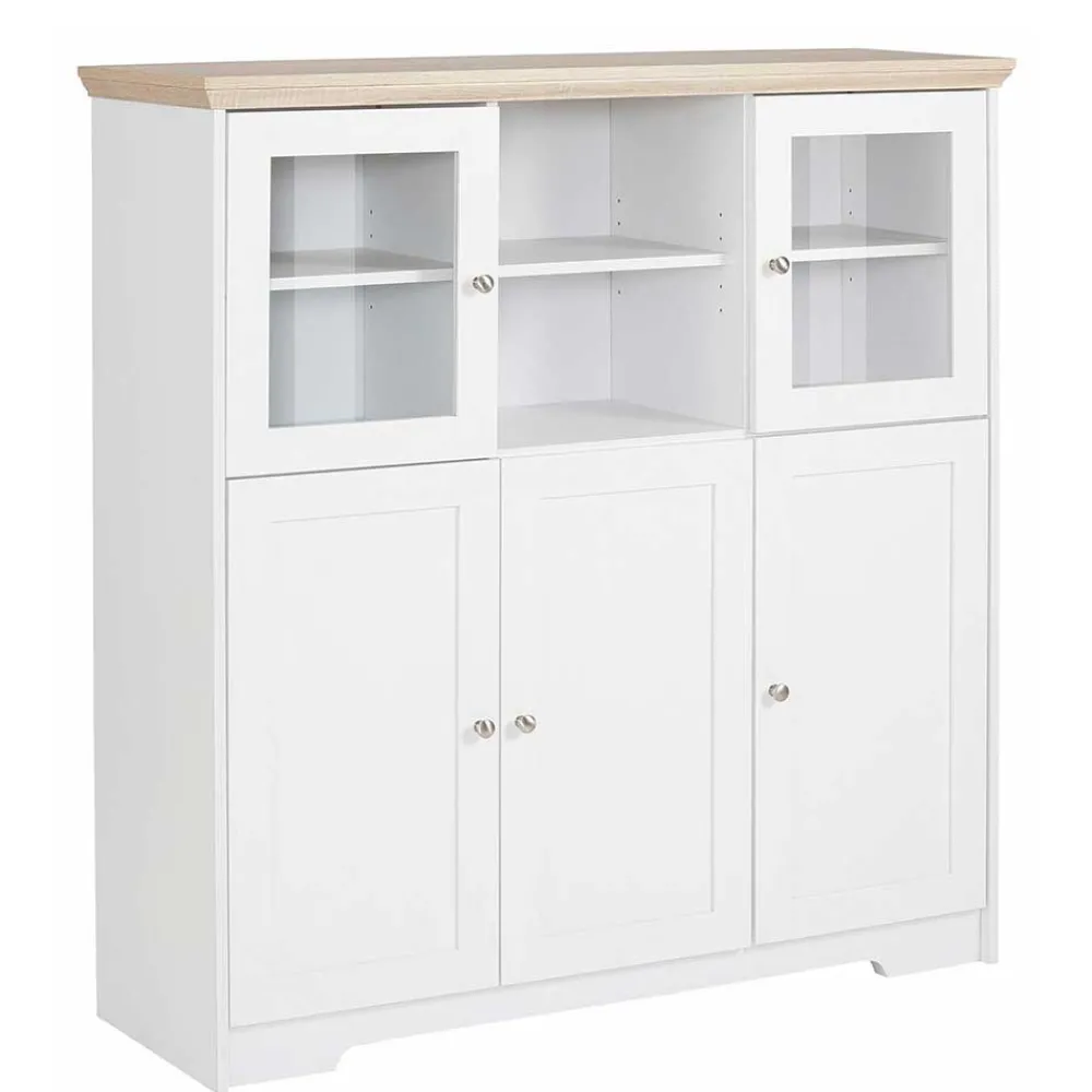 - Preiswertes Highboard in Weiß und Eichefarben