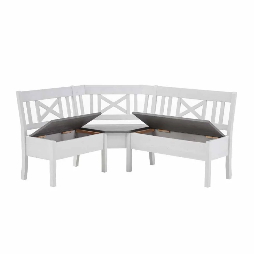- Komfortable Eckbank in Weiß und Grau