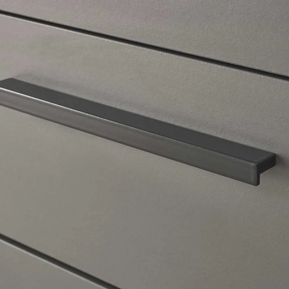 - Die Oberfläche ist melaminbeschichtet in Holzoptik und Anthrazit, dadurch besonders pflegeleicht