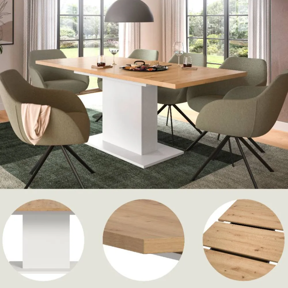 - Zeitloser Küchentisch in Weiß und Wildeichefarben