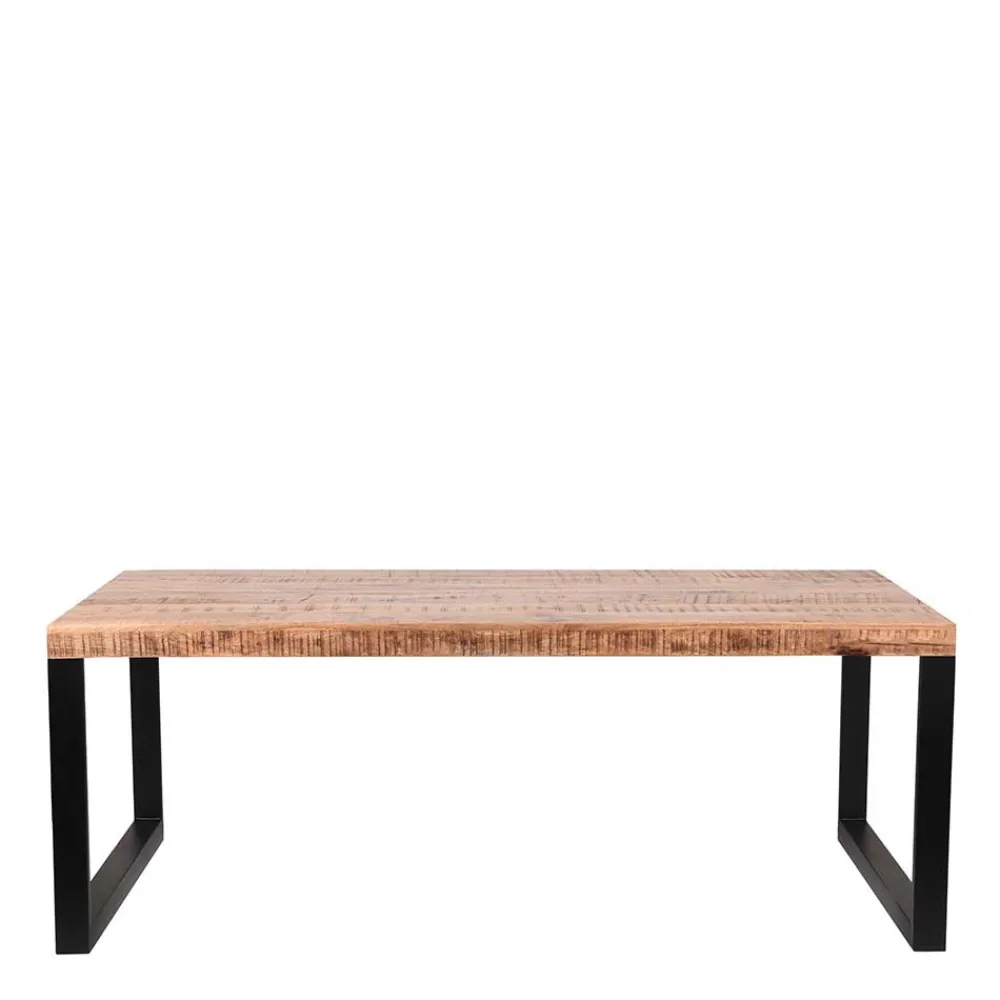 - Robuster Esstisch in Mangoholz Naturfarben und Schwarz