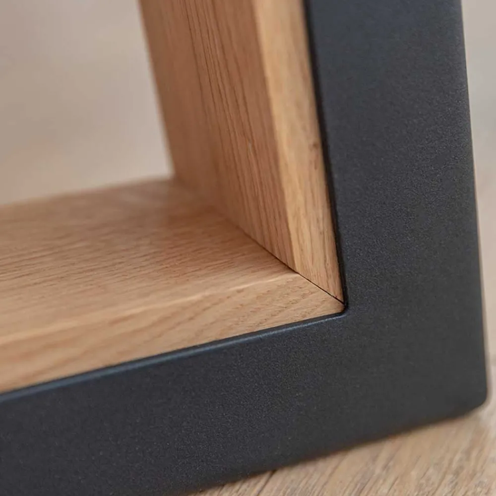 - Holzoberflächen natürlich geölt, Metall schwarz pulverbeschichtet