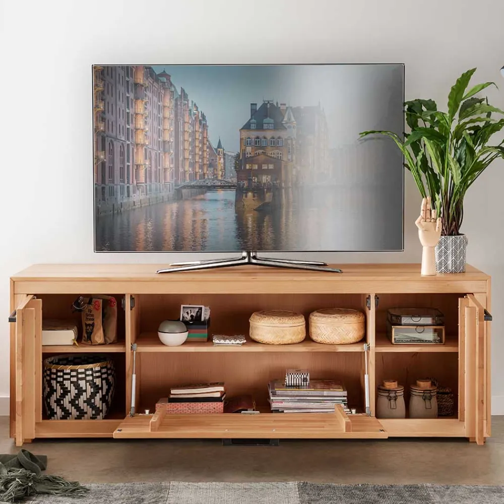 - Deckplatte und Front durchgehende Lamelle, Seiten und Innenausstattung keilverzinkt