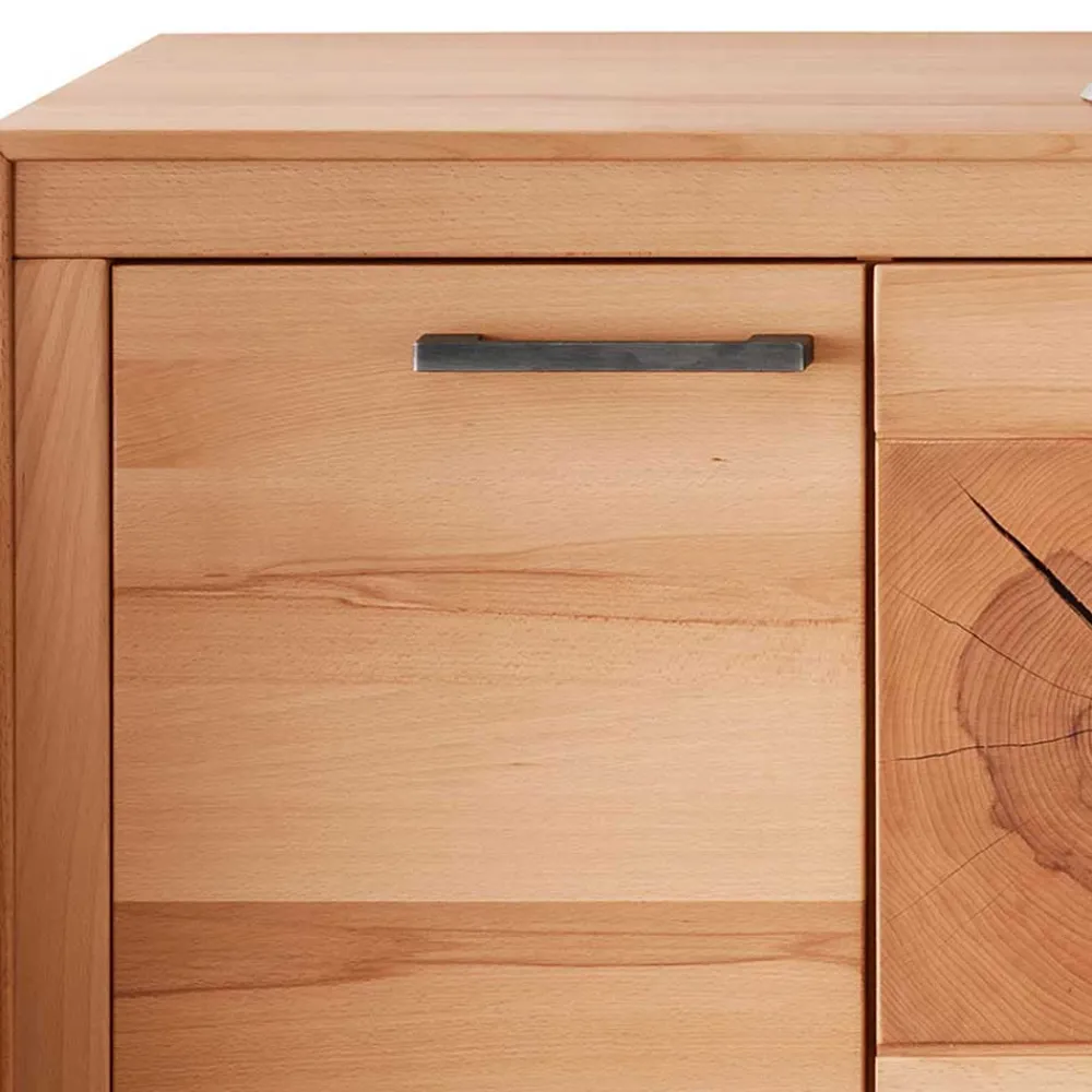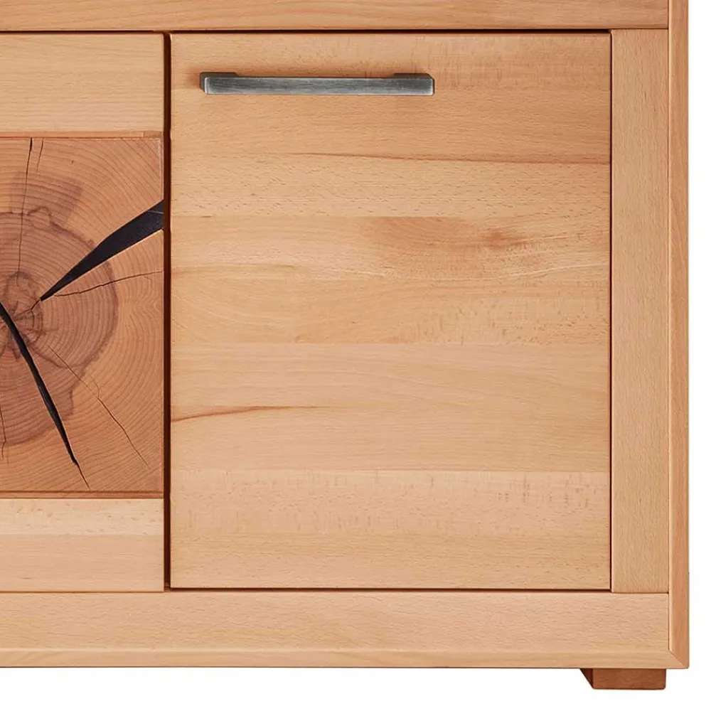 - Ausdrucksstarke Hirnholz-Elemente auf der Klappenfront