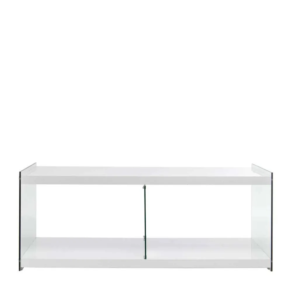 - Modernes TV-Board in Weiß Hochglanz und Transparent