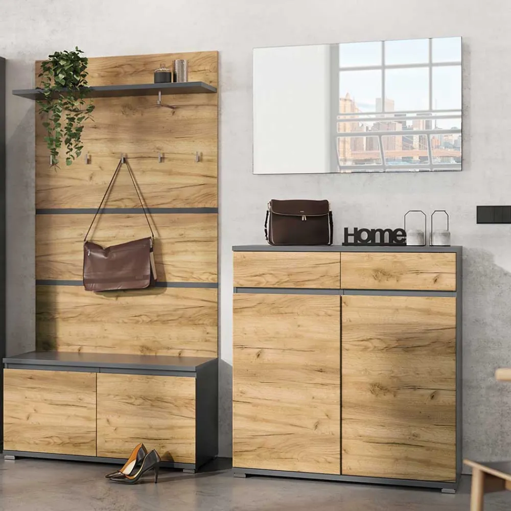 - Zeitlose Garderobenmöbel in Wildeichefarben und Anthrazit