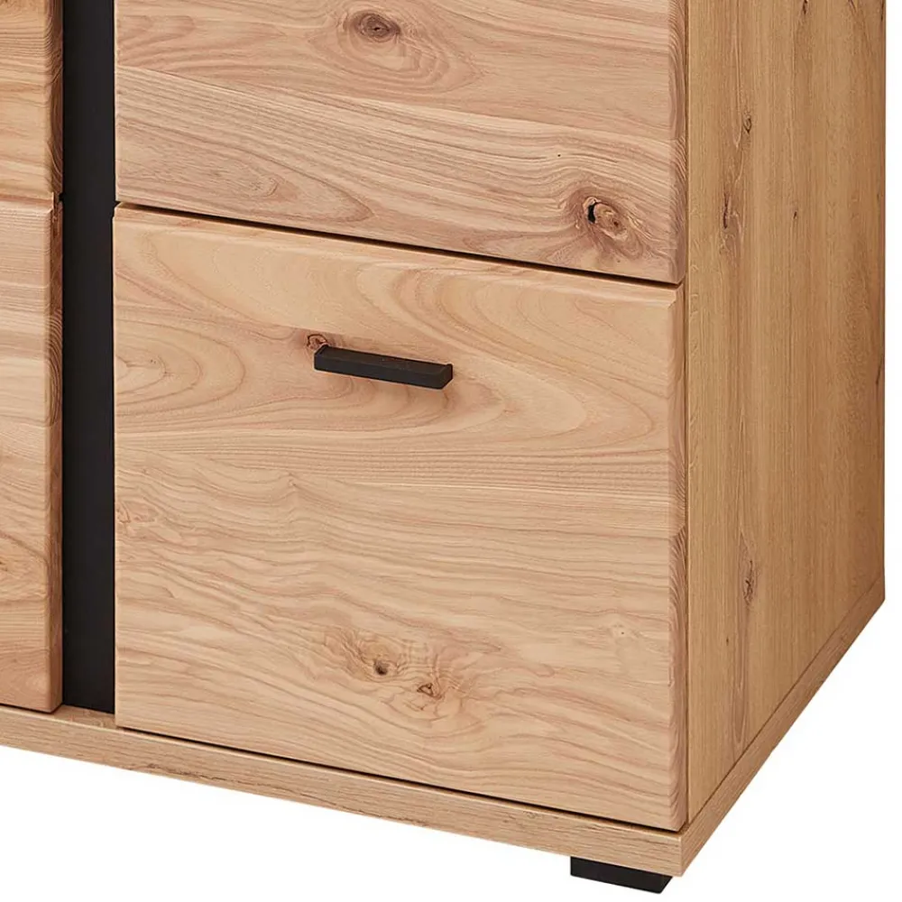 - Modern präsentiert sich dieses Möbelstück in Eschefarben (Front) und Wildeichefarben (Korpus) sowie Schwarz