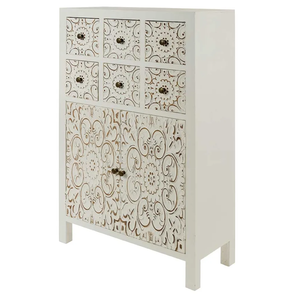 - Romantische Kommode in Antikweiß und Goldfarben