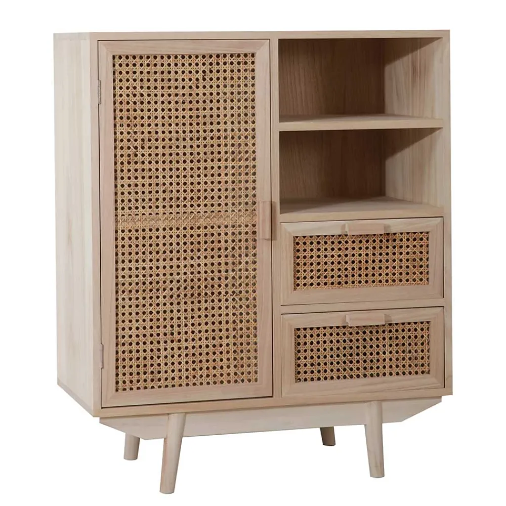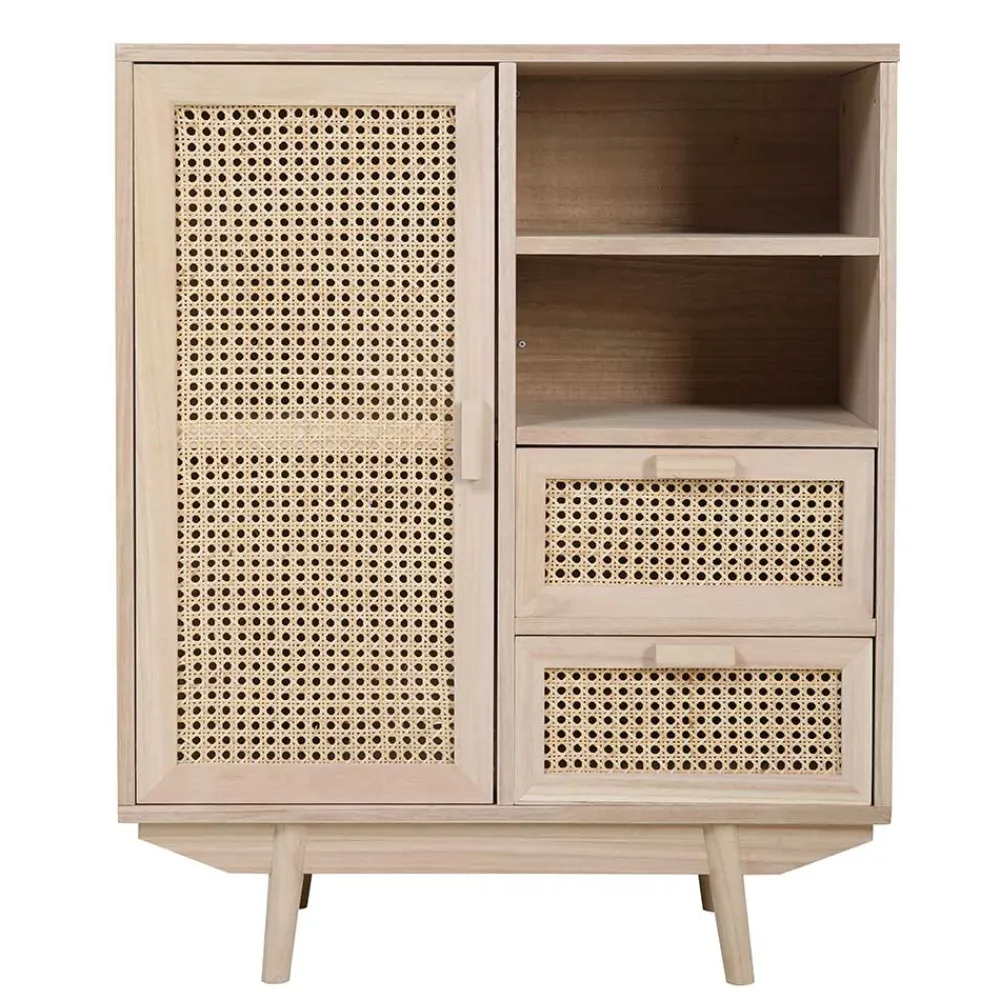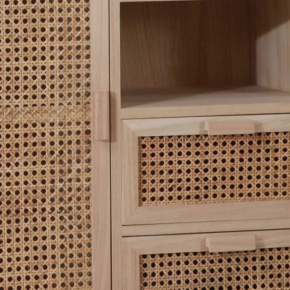- Aus Paulownia Massivholz, MDF und Rattan hergestellt