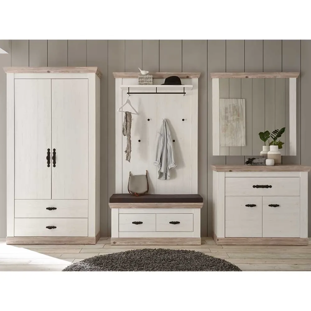 - Großartiges Garderoben Set in Pinie verwittert und Weiß