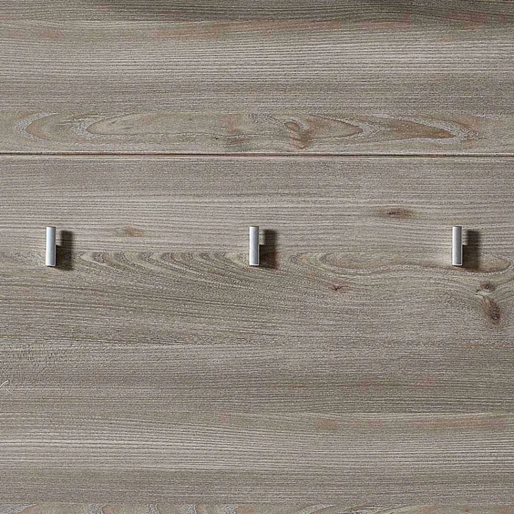 - Eine praktische Hutablage, darunter eine Kleiderstange aus Metall in Silber matt