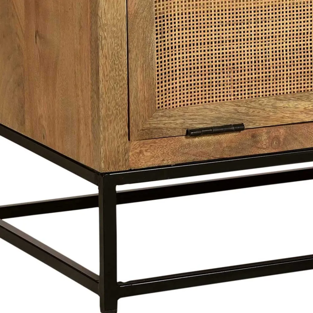 - Hergestellt aus Mangobaumholz, Metall und Rattan