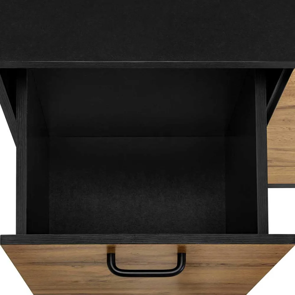 - Pflegeleicht folierte Oberflächen in Holzoptik und Schwarz