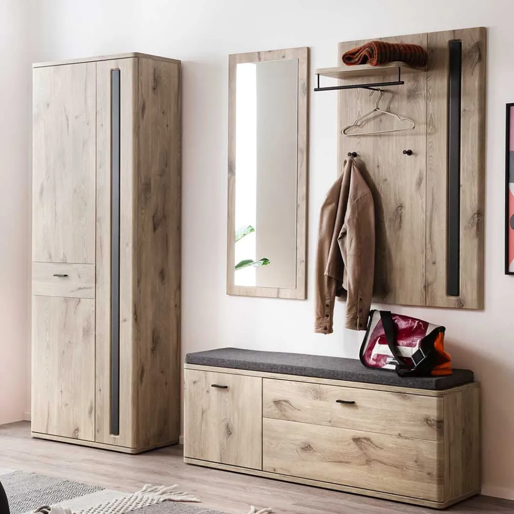 - Aktuelle Garderobenmöbel in Wildeichefarben und Dunkelgrau