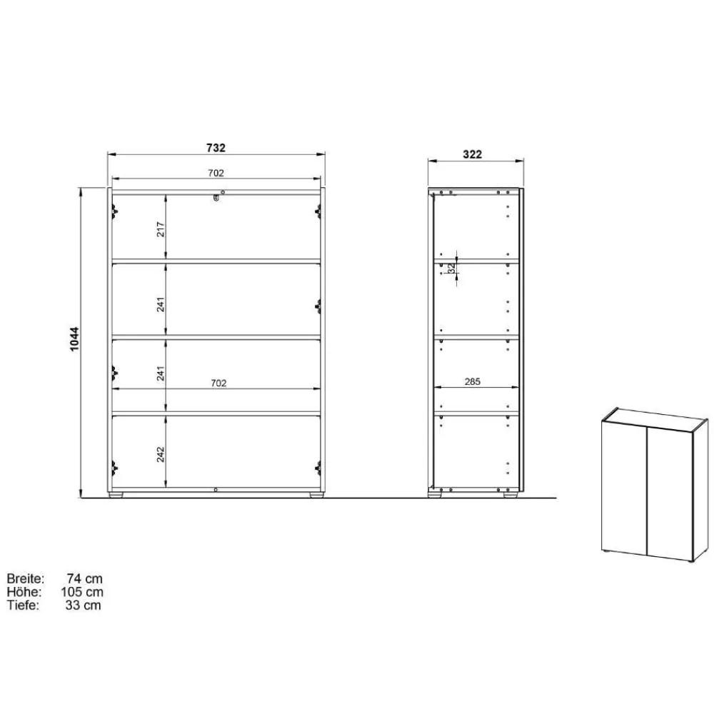 - Maße: BxHxT: 73,2×104,4×32,2 cm