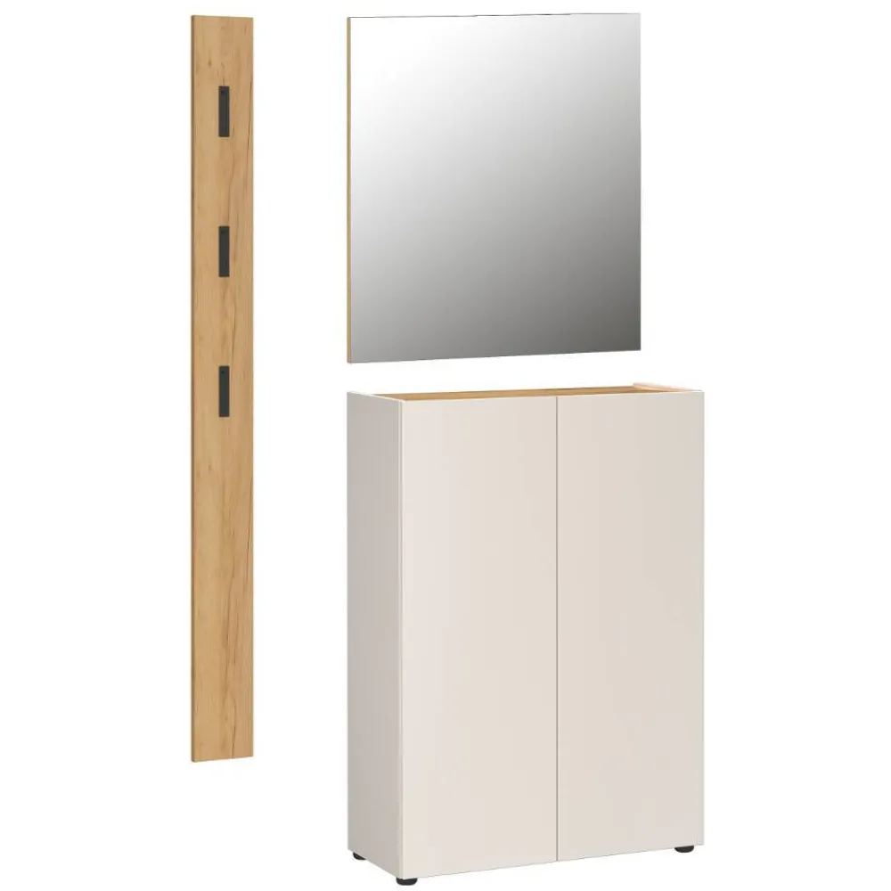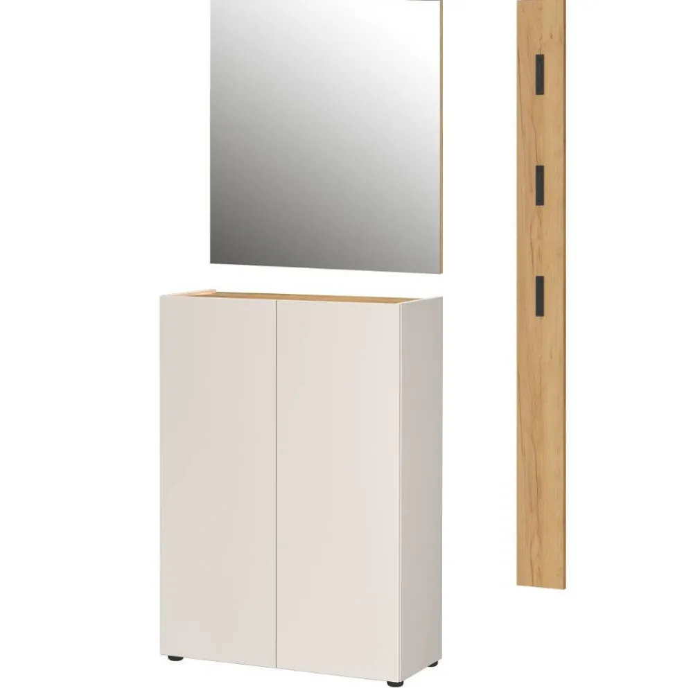 - Zeitgerechte Garderobenmöbel in Hellgrau und Wildeichefarben