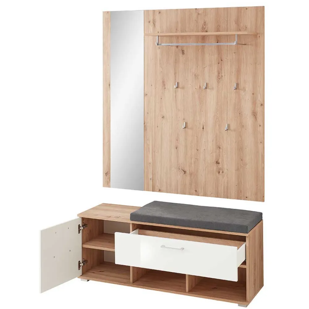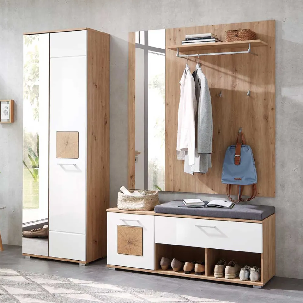 - Trendige Garderobenmöbel in Weiß und Wildeichefarben