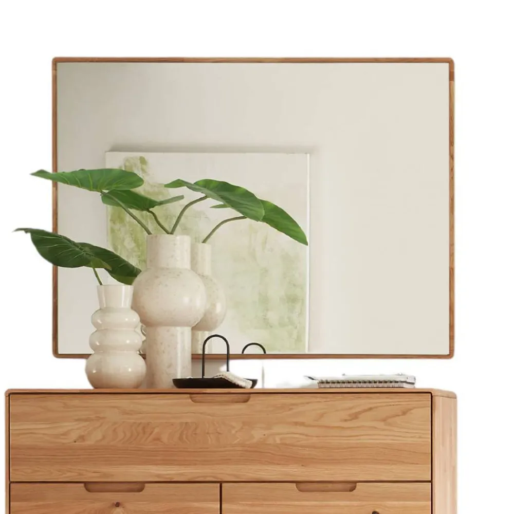 - Aus Wildeiche Massivholz, Metall und Spiegelglas hergestellt