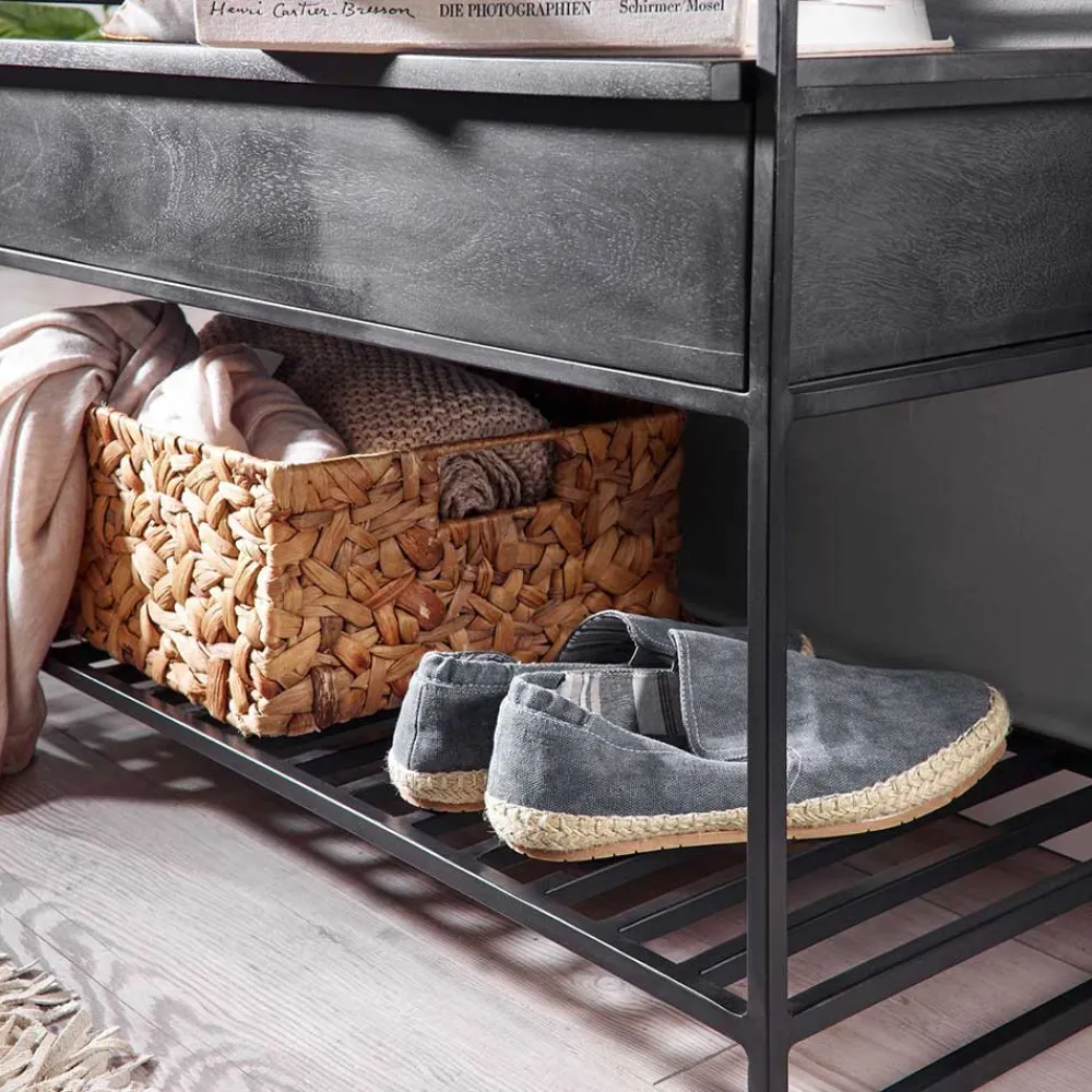 - Aus massivem Mangobaumholz und Metall hergestellt