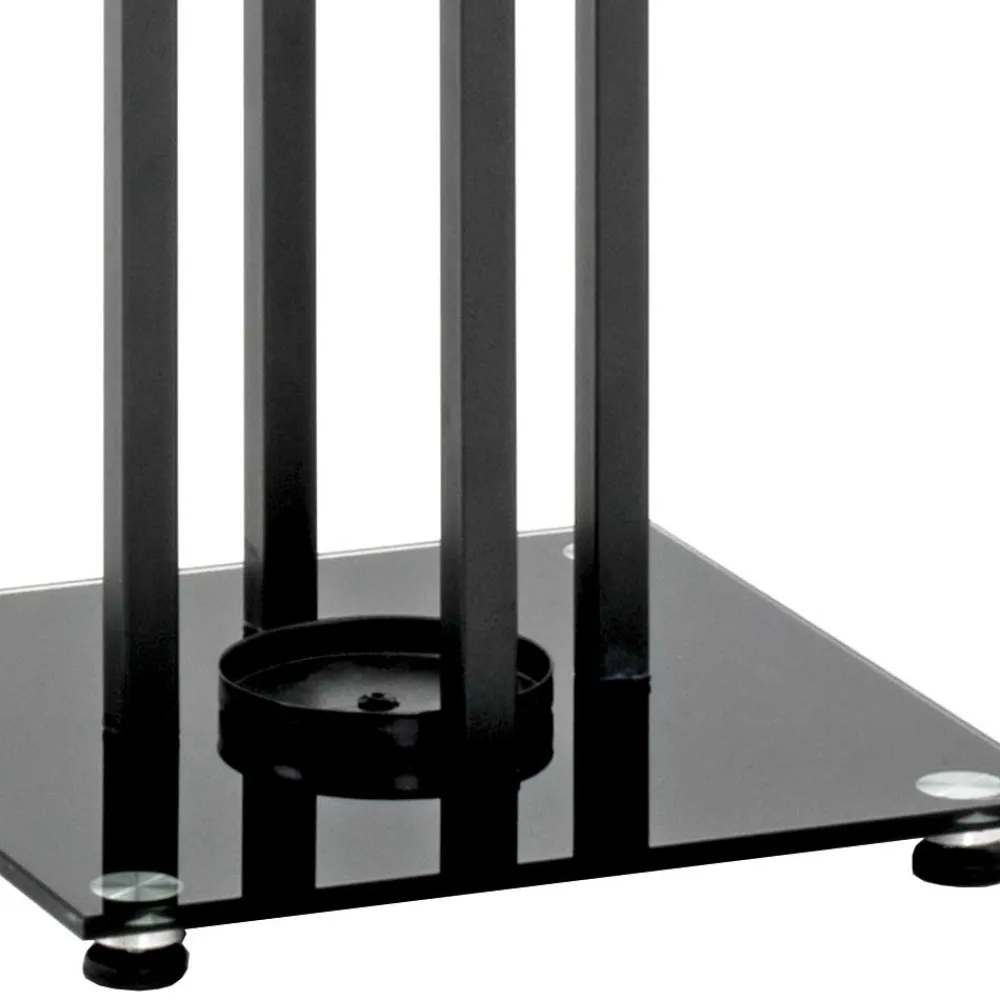 - Stabile Bodenplatte aus schwarz lackiertem Glas mit Bodenschonern